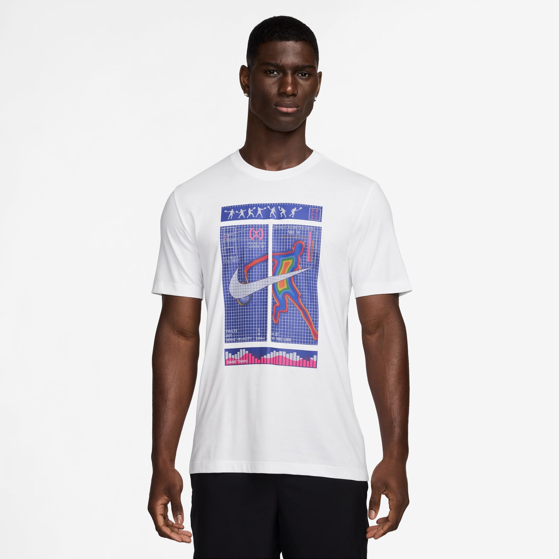 • T-shirt de tennis NikeCourt Dri-FIT pour Homme. Conçu pour les courts, ce t-shirt léger doté d'une technologie anti-humidité vous garde au sec après chaque point. Sa coupe classique vous permet de bouger et de jouer librement, tandis que ses imprimés s'inspirent des données et des connaissances qui contribuent à l'amélioration de notre jeu. La technologie Nike Dri-FIT évacue la transpiration pour une évaporation plus rapide, vous permettant de rester au sec et à l'aise. Tissu doux en mélange de coton et de polyester, léger et respirant. Caractéristiques : 57 % coton / 43 % polyester. Lavable en machine. Importé. 57 % COTON, 43 % POLYESTER.