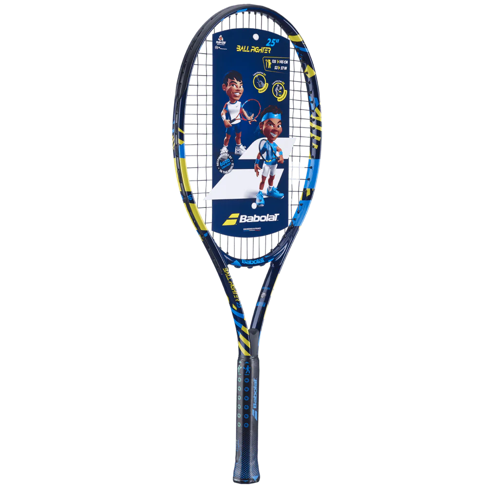 Tennis is definitely one of the hardest sports as a beginner. So, what are we doing about it? Well, we're making it easier for kids to learn so they can make quicker progress and have fun on the courts. We've worked closely with specialist partners to design a racquet just for kids: the Ballfighter 25, which is lighter, easier to handle and more forgiving. Your future champion will love using this racquet with a fun, colourful design! To make learning to play even easier and help kids master tennis basics, we've added teaching tools to the racquet. It's no coincidence that the Ballfighter is recommended by 6000 coaches worldwide. The Ballfighter 25 is designed for players who are 135 to 145 cm tall