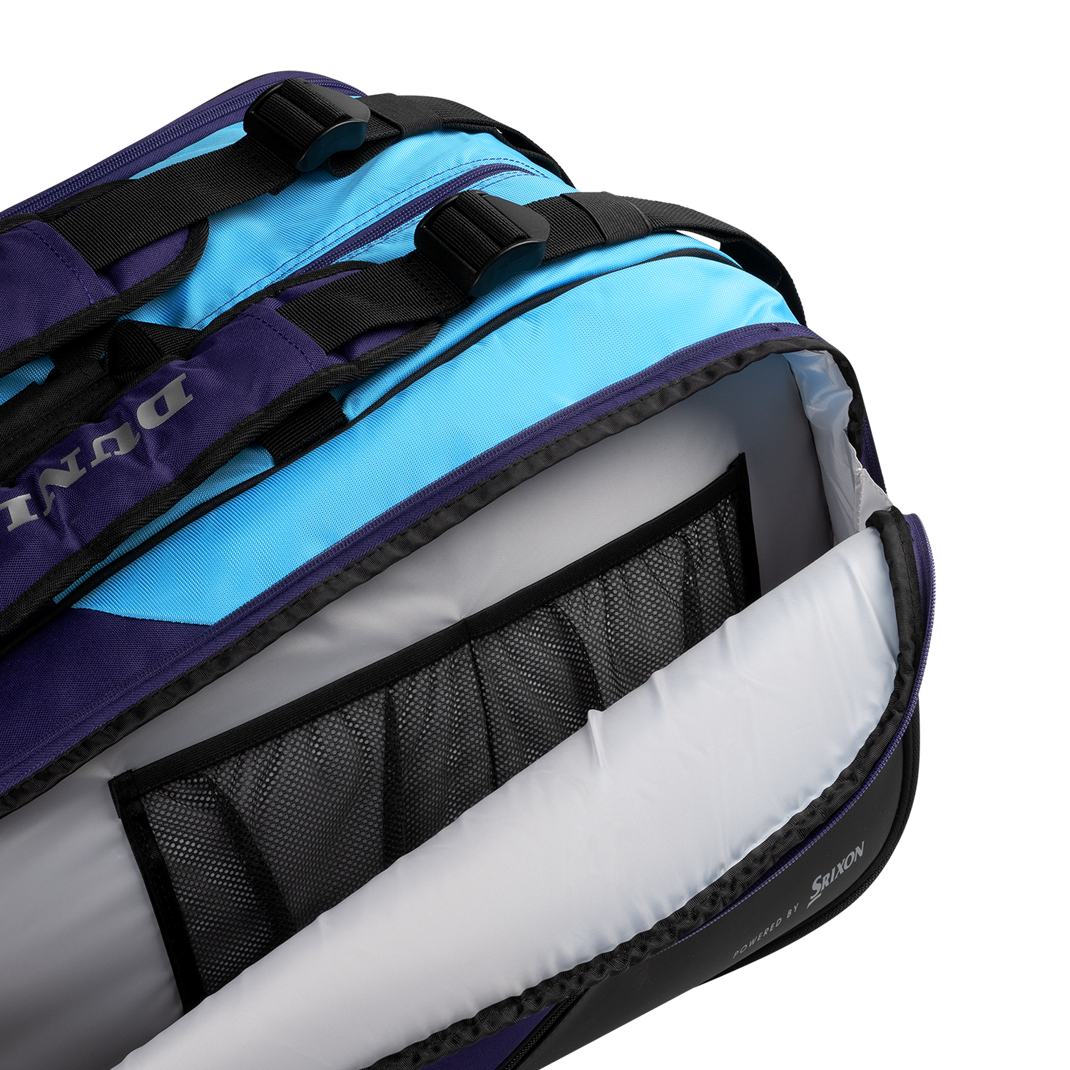 The storage is structured around three large main compartments. One of these compartments features Thermo Guard technology, a thermo-insulating lining that protects your rackets and strings from extreme temperature variations. The major advantage of this bag is its central compartment, which can be divided into two with a removable wall, offering you the flexibility to separate your clothes from your bottles or create an even larger storage space.