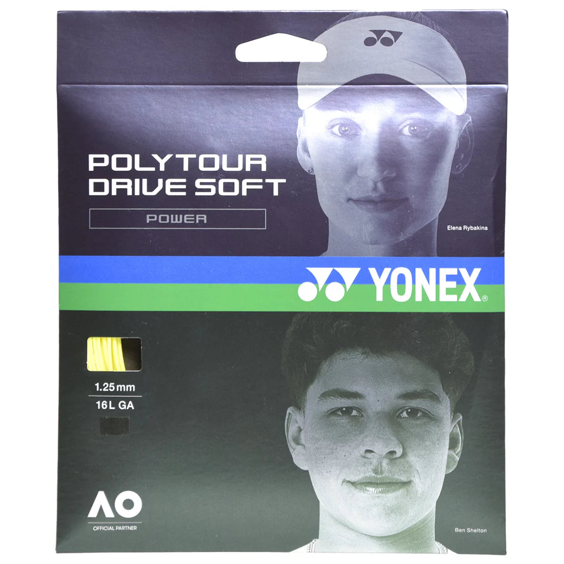 The Yonex Polytour Drive Soft 125 Yellow string combines exceptional durability with a softer touch for enhanced playability. Engineered with advanced multifilament construction, it offers precise ball control and reduces vibration for improved comfort during long matches. Its vibrant yellow hue allows for easy visibility, helping players monitor string movement and shot accuracy. Ideal for advanced players seeking a reliable string that delivers both performance and feel on the court.